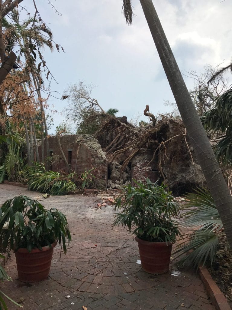 So it went that during the hurricane we lost quite a few of our beloved trees that made a distinct place of our island. One in particular would be the gigantic strangler fig tree located in the courtyard of the Key West Garden Club at West Martello tower. This tree harbored many celebrations and parties, and it broke our heart to see it go. It was a fortress within the fort, as you could walk within the dangling root system and around the trunk. The Florida Keys lost many of this type of tree and other tropical varieties because of their shallow roots and wide canopies.
