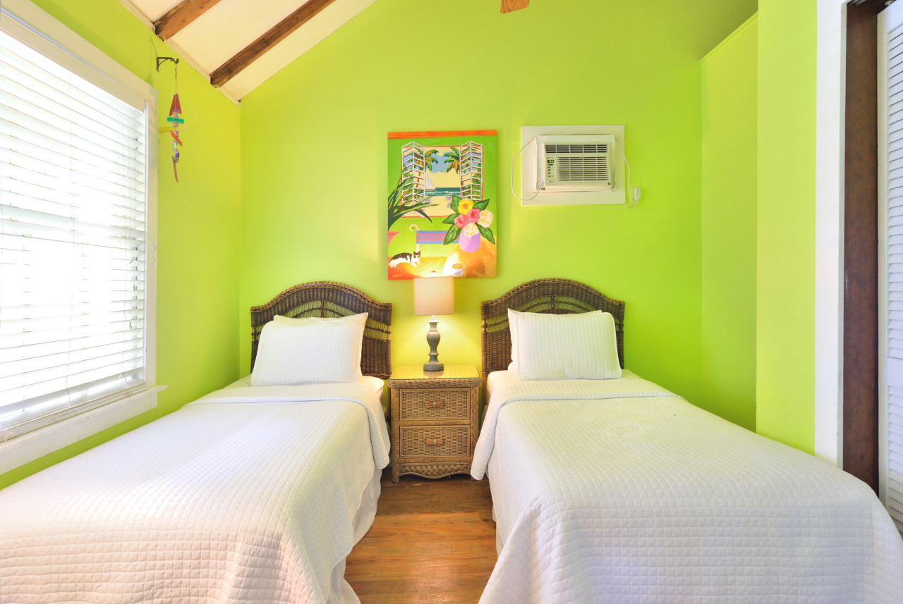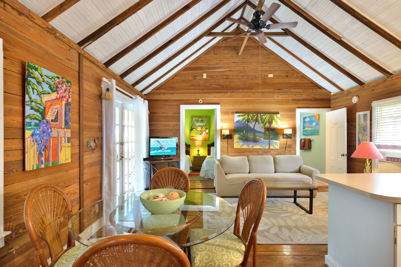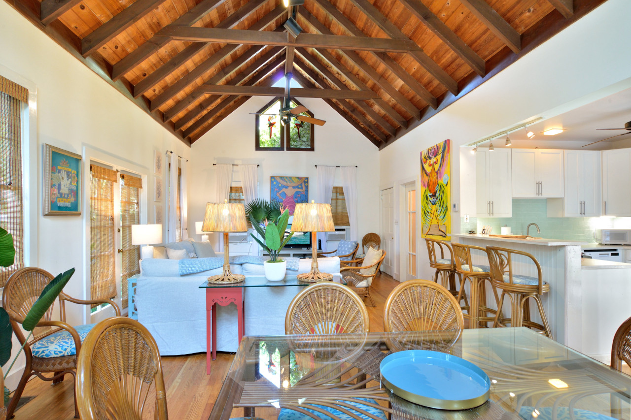 Originally built in 1938, Amanda’s Dream Suites vacation rental is a charming large wooden home offering two full stories with deep porches which overlook the garden and pool. An exterior stair case on one end of the building join the first and second floor. A renovation of the home in the early 1990’s redesigned the floor plan so the home can also be utilized as two separate units. Both the first and second porches run the full length of the house, and most rooms have French doors that lead out to the porch. Furnishings are tropical, cheery. There is nice art work throughout. When rented as a complete complex, this home is the perfect setting for family gatherings or small reunions.