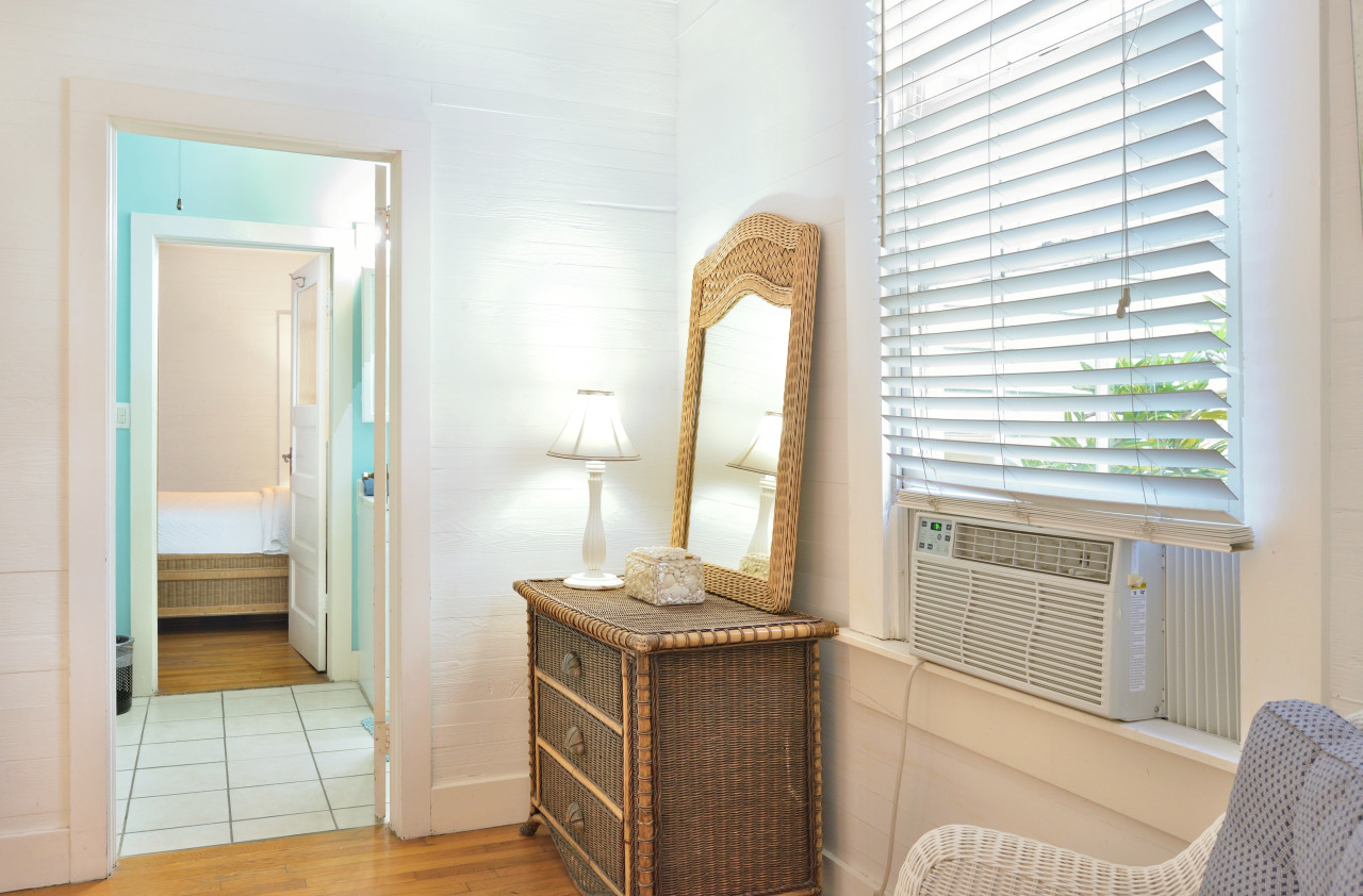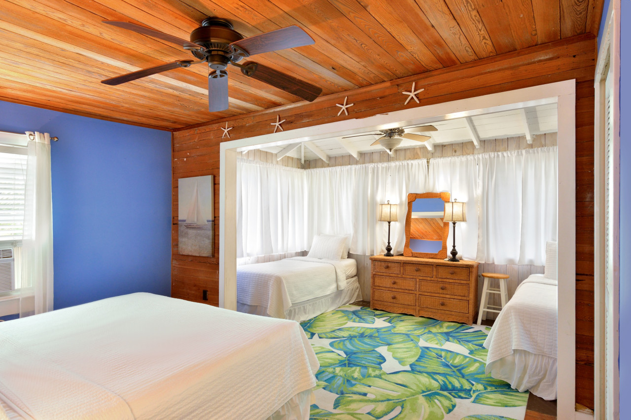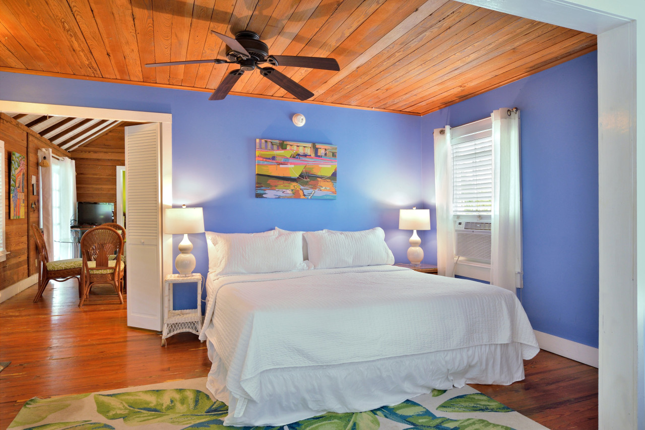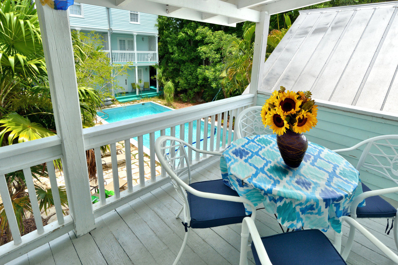 Originally built in 1938, Amanda’s Dream Suites vacation rental is a charming large wooden home offering two full stories with deep porches which overlook the garden and pool. An exterior stair case on one end of the building join the first and second floor. A renovation of the home in the early 1990’s redesigned the floor plan so the home can also be utilized as two separate units. Both the first and second porches run the full length of the house, and most rooms have French doors that lead out to the porch. Furnishings are tropical, cheery. There is nice art work throughout. When rented as a complete complex, this home is the perfect setting for family gatherings or small reunions.