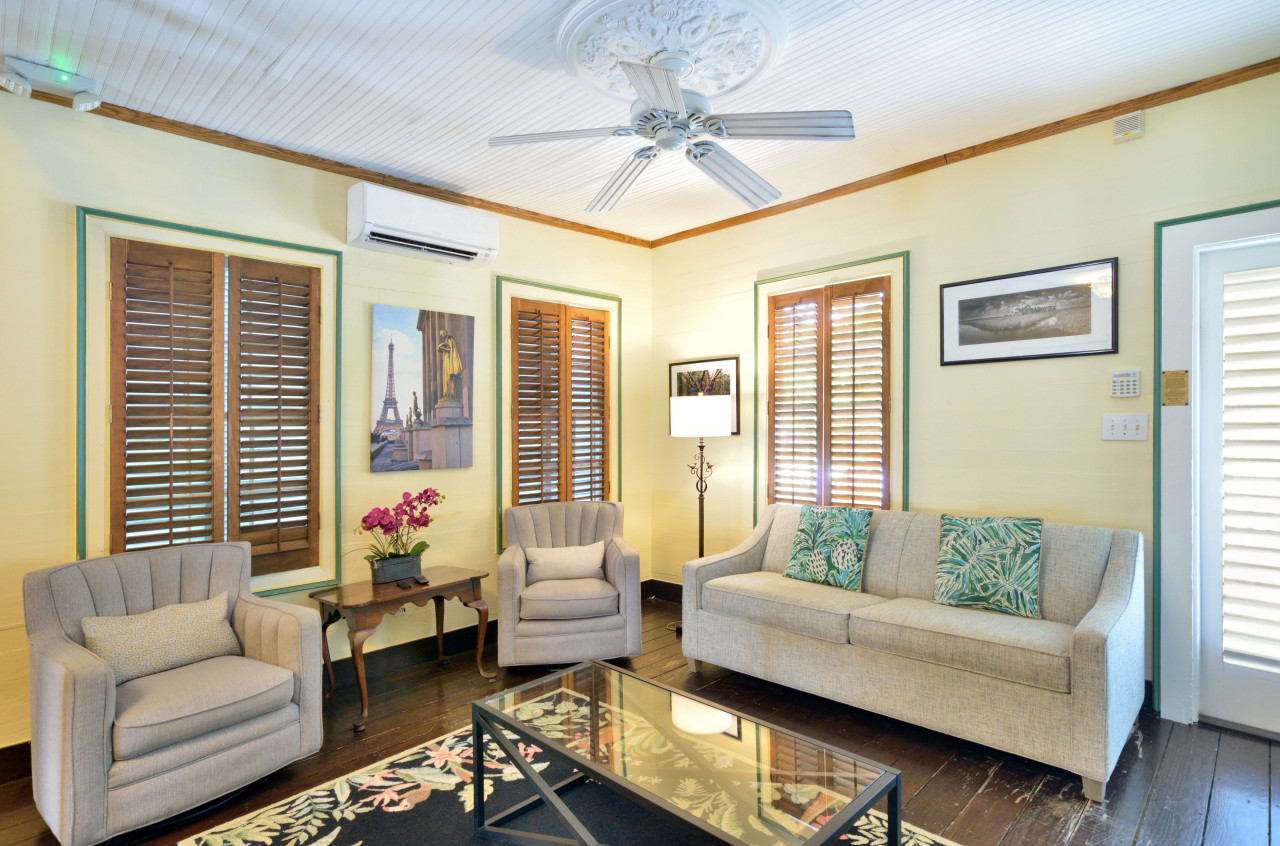 Authentic Key West property! Gorgeous brick paver patio w/pool. Perfect four family of four and beds to spare in living room. Top notch location and proximity to the Rum Bar. Highly recommend.