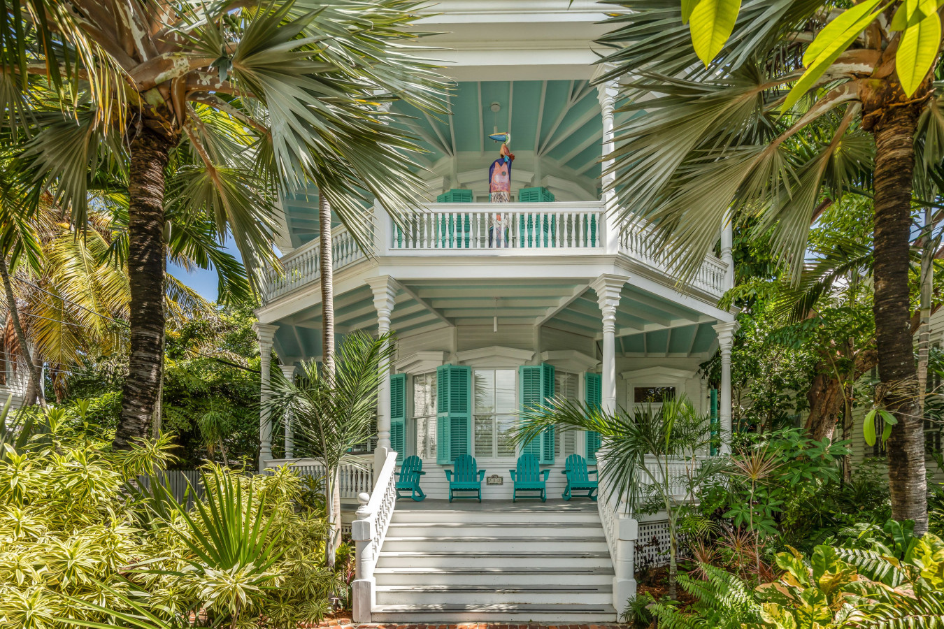 Key West is known for its alluring gingerbread wrap around verandahs, and this home is famous for its iconic octagon front porches. In the front of the house, the 1st and 2nd floor verandahs offer unique places to relax