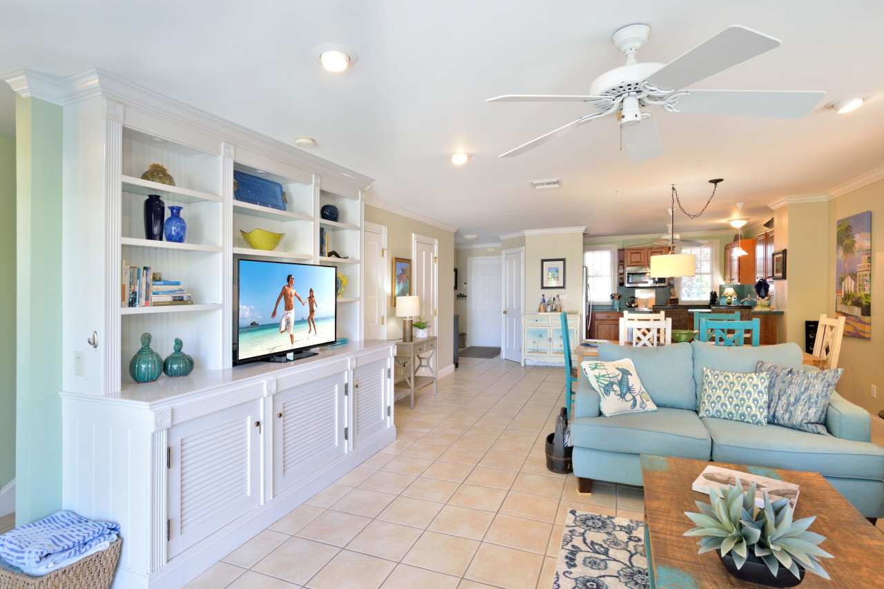 A celebration of the tropical Key West style is made imminent throughout the interior of the house with a perfect mixture of coastal and rustic furnishings. Shades of teal blue, seafoam green, and sand tones are used throughout the house as the backdrop for thoughtfully placed art pieces and books. Attention to detail is seen in every corner throughout the house. The feel is rich, cheerful, and relaxing.