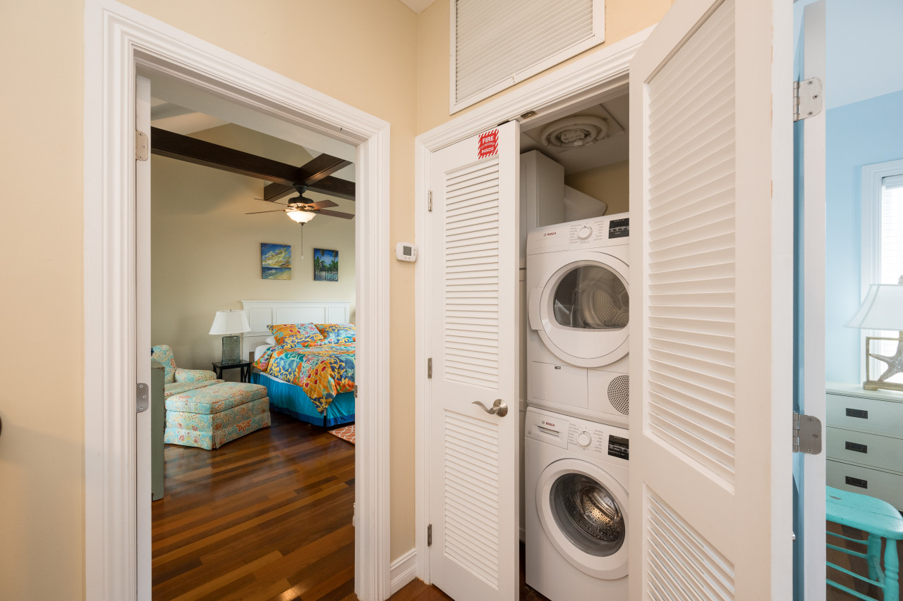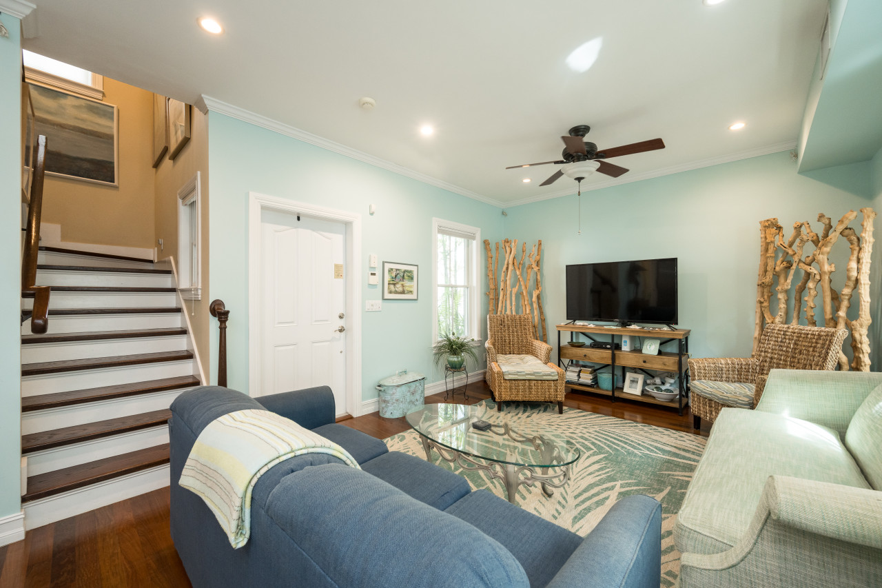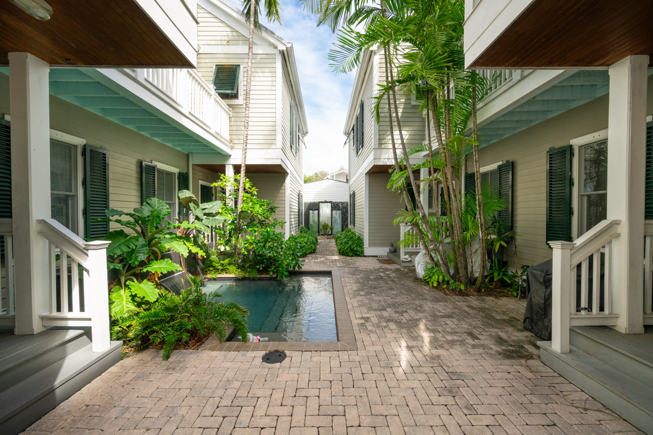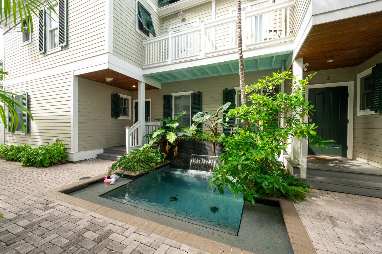 Island Interlude is unit #2 tucked within a quiet, gated four-unit complex. The four townhomes share a charming, foliage-lined dipping pool with a water feature— great for a refreshing plunge after buzzing around town. Many guests also enjoy lounging seaside or under the pines at nearby Fort Zachary Taylor State Park, and slipping over to Blue Heaven for brunch a time or two… or more… You also won’t be far from Mallory Square, Truman Waterfront Park, the new Key West Amphitheater, Mile 0, Duval Street and more. Your private parking spot, in-unit laundry, and generous storage encourage you to settle in and see it all.