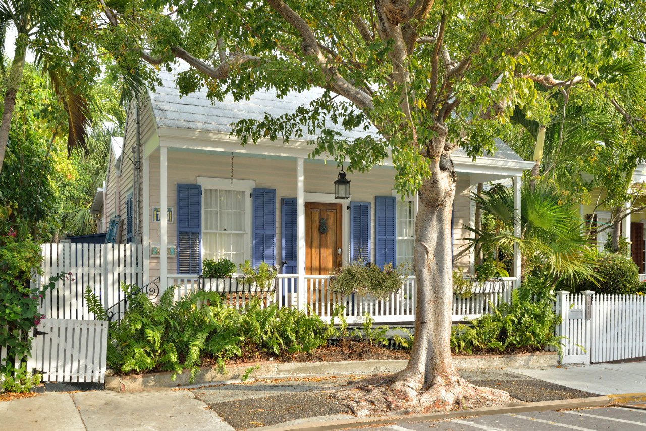 Now that we’re back to the front of the cottage, where we began our tour, you’ll notice that the yard is fenced with the quintessential Key West white picket fence plus porch railing and is lushly landscaped to complete the perfect historic conch hideaway.