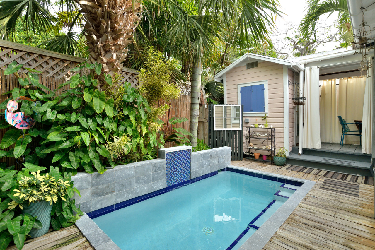 Ideally situated on famous Southard St., in the Historic Seaport side of Old Town, this classic Key West cottage is nestled in one of the island’s most charming and interesting residential neighborhoods. Handcrafted with heart-pine wood, and capturing true Caribbean character, this colorful saw-tooth roof abode, carries an authenticity that you generally only hope to find in The Bahamas or further down-island. In the pool garden. For anyone who wants to experience the essence of Key West tropical living, this unique home will bring you to the heart-and-soul.