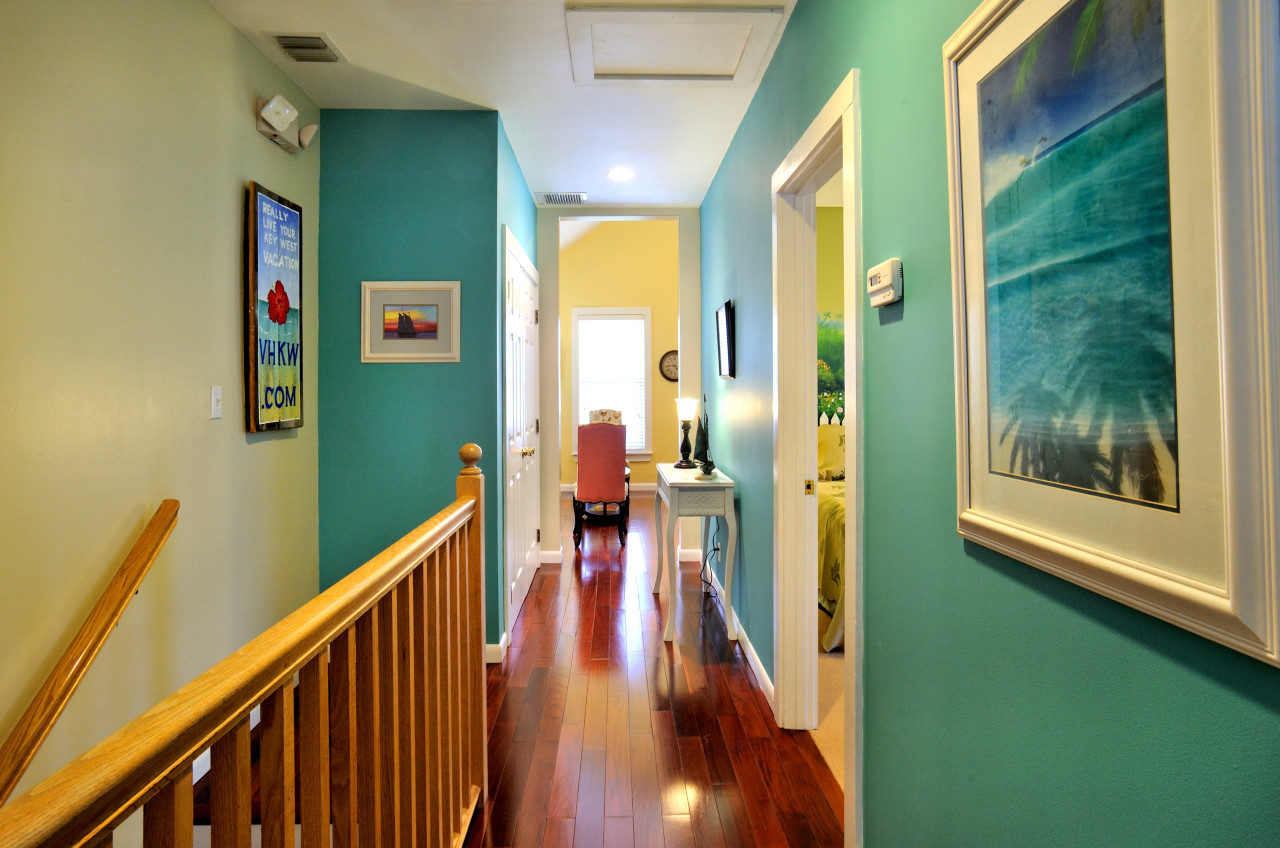 You’ll know you’ve left the bustle outside, when you step inside the front door of this completely renovated early 1900’s wooden island house. Curbside appeal is beautiful, with a covered front porch and manicured tropical landscaping. The main entrance is through the front door that takes you right up to the 2nd floor via a beautiful traditional wooden staircase, to the colorful landing at the top.