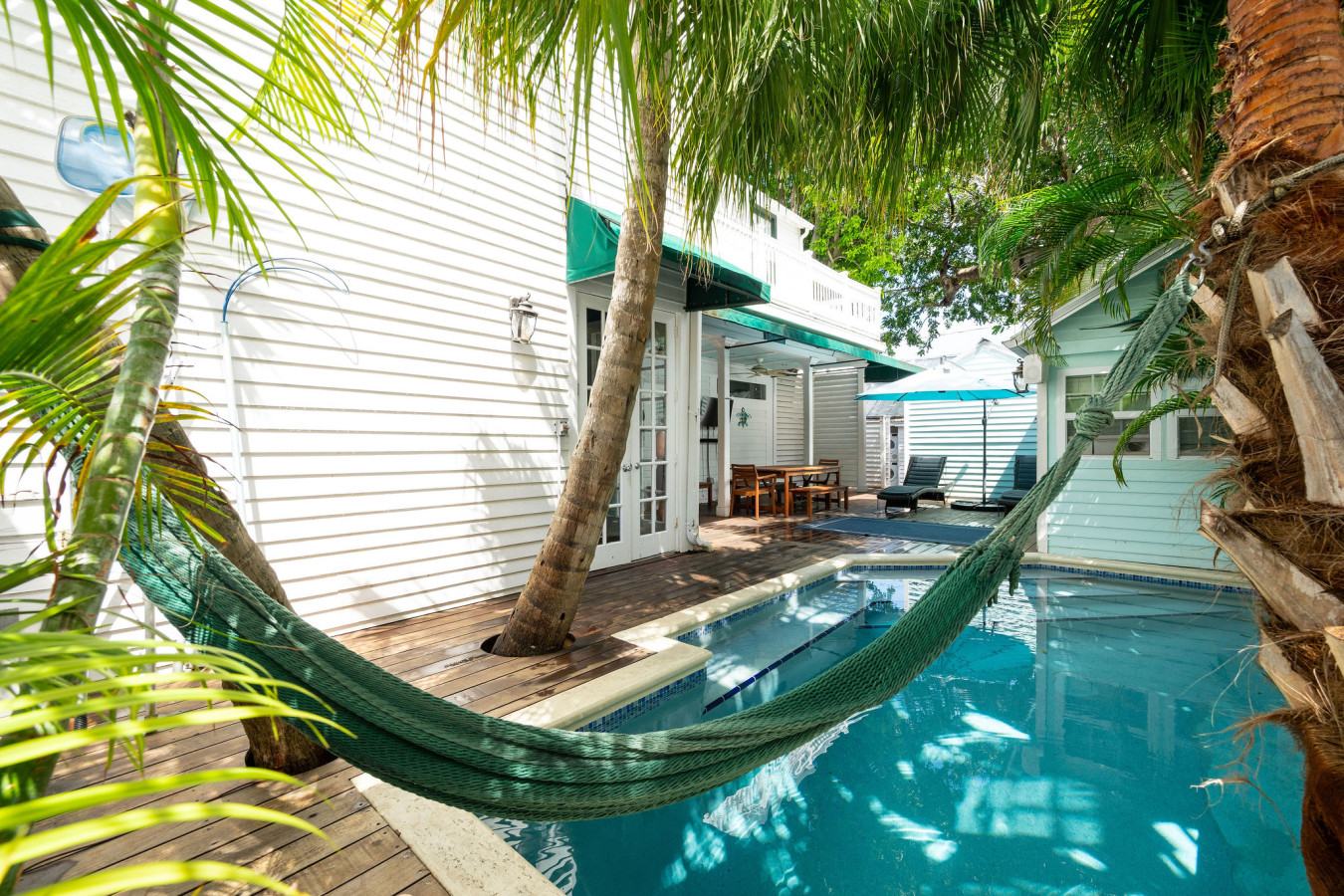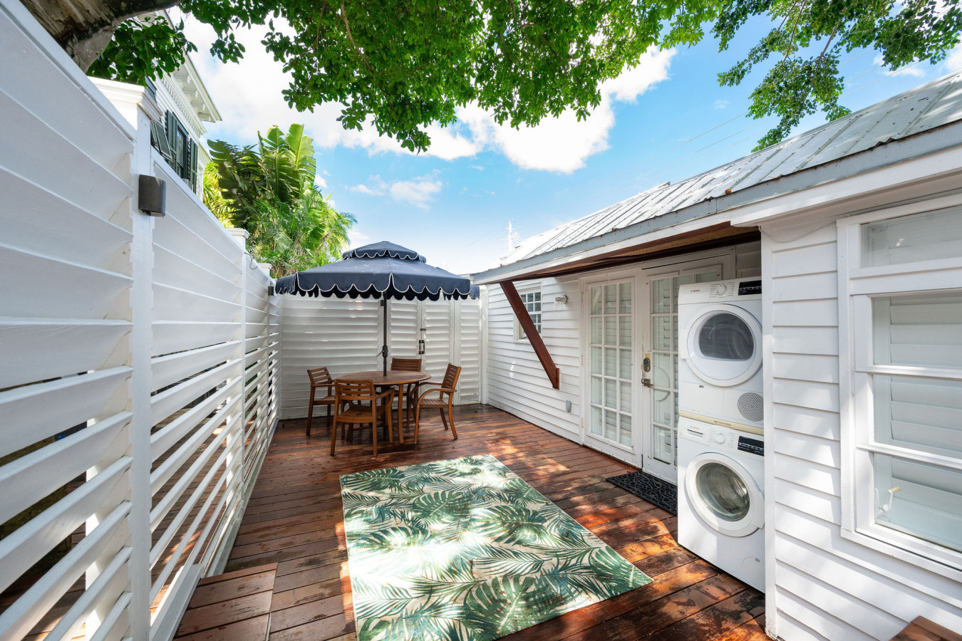 Across the pool deck there’s a free-standing poolside cottage bedroom that provides 2 full size beds and 1 full bathroom. The privacy fence at the back of the pool deck has a gate that leads to the Private Caribbean Guest House. Open the gate for a seamless access between the two dwellings.