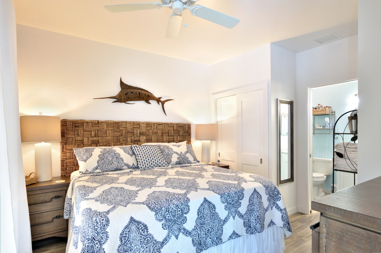 On Hemingway’s Rounds, provides two bedrooms and two bathrooms. A split-floor design offers maximum privacy, with one bedroom at the front of the house, and the other at the back of the house.