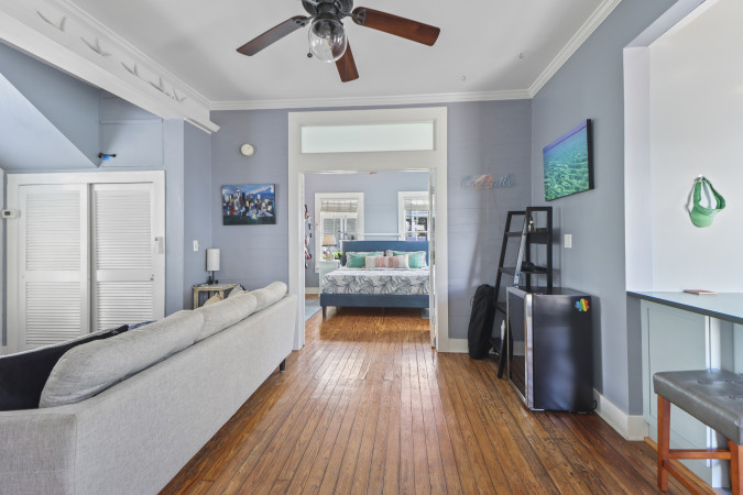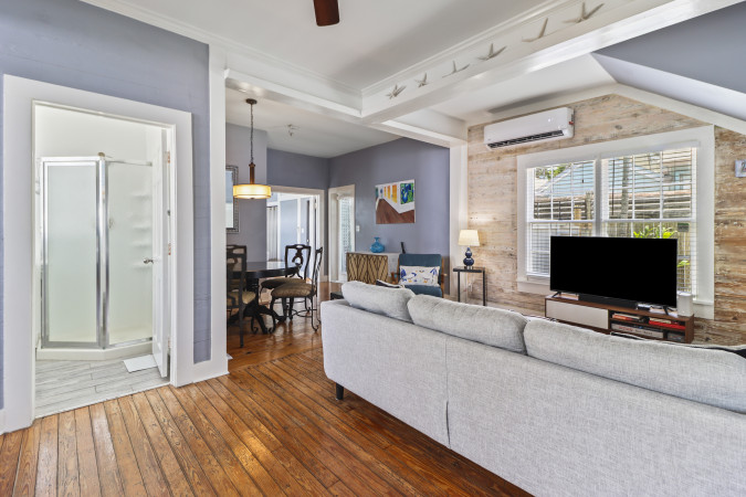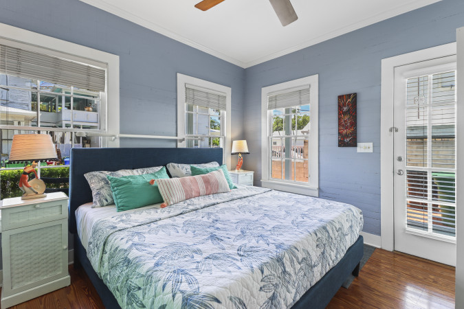 Our guests are in for a treat at such a bright and beautiful entire first-floor unit in Key West. This inviting two-bedroom bungalow is perfectly situated on a calm and quiet street in Old Town, yet just steps from the historic cemetery and a stroll from ever-buzzing Duval Street. You’ll also have your own off-street parking within the property’s gate, perfect for a smaller vehicle or your golf cart for further cruises (contact our concierge to help you arrange all your rental needs).
