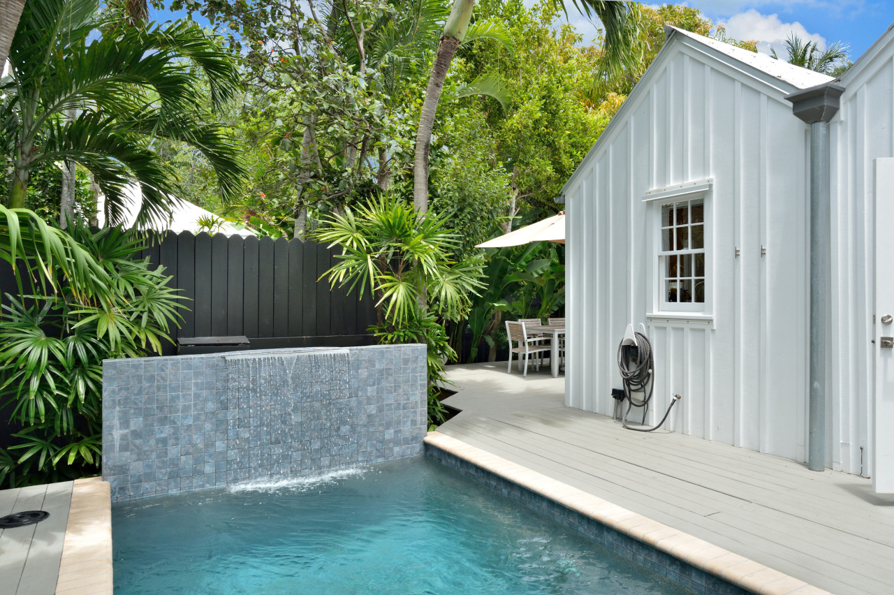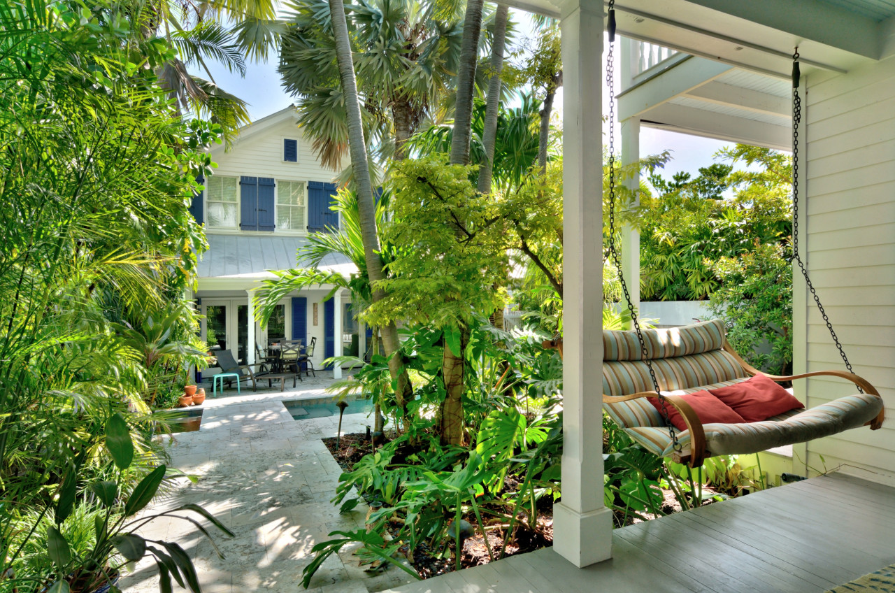 The essence of the Key West lifestyle unfolds as you approach this beautiful compound property. Royal-blue window shutters and classic white clapboard siding lead the way to this extraordinary combination of three luxurious island dwellings on a sleepy one-way street.