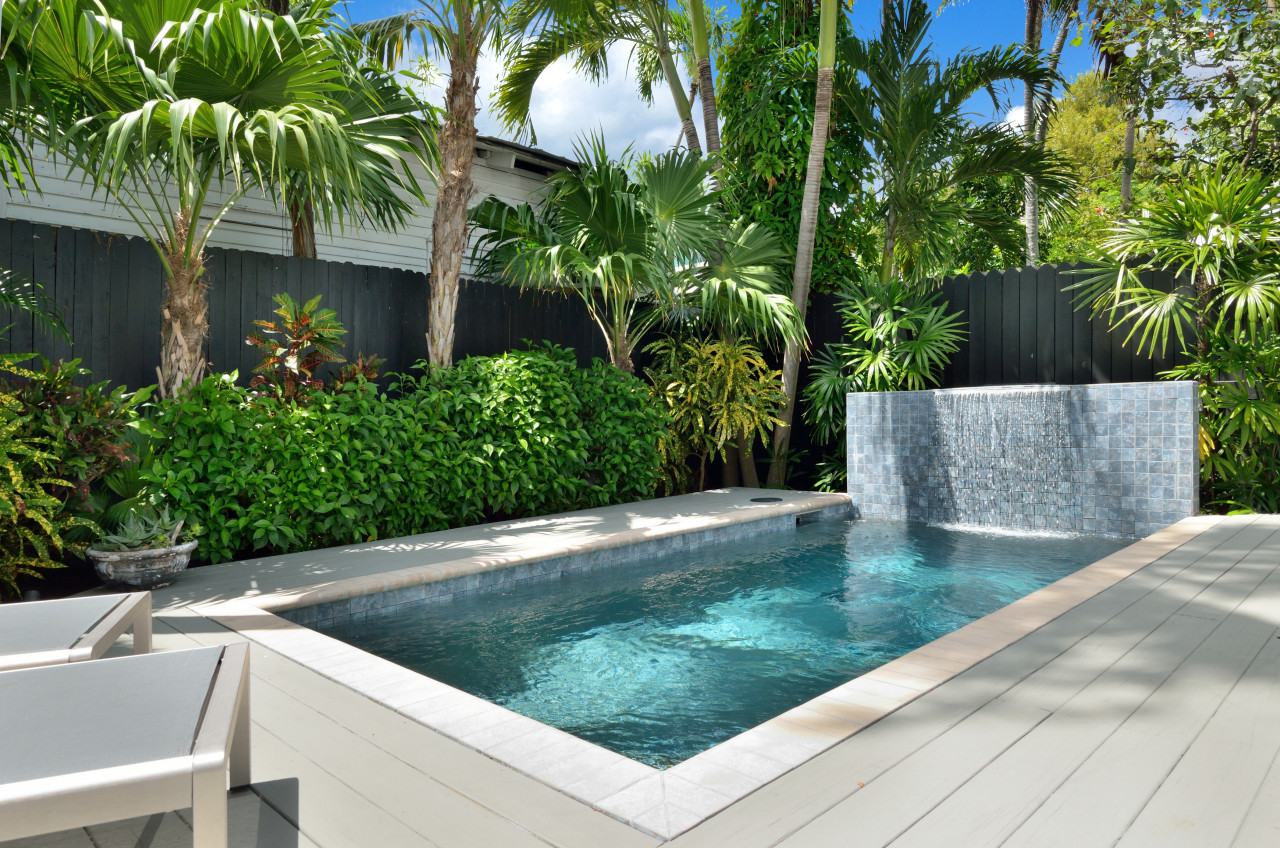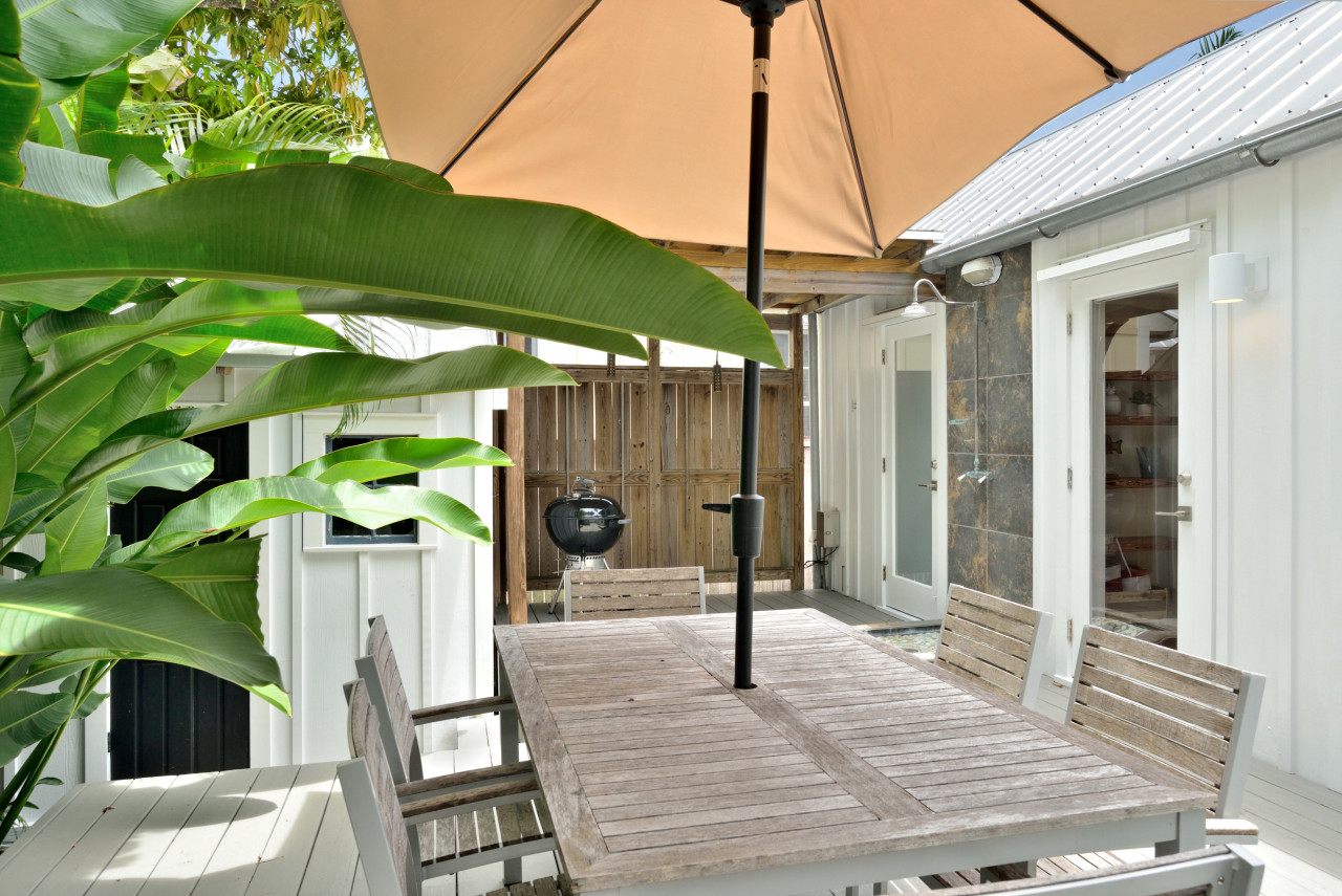 At The Blue Llama Estate you’ll kick back at two private swimming pool gardens, enjoy three fully equipped upscale kitchens, grill on a unique secluded BBQ porch, workout in a private home gym, and at your fingertips is a Steinway piano! And even though you won’t really need a car, you’ll enjoy the convenience of three off-street parking spaces. Situated on the upper end of charming Elizabeth St., you’re off-the-beaten path yet just three streets from mid-Duval St.