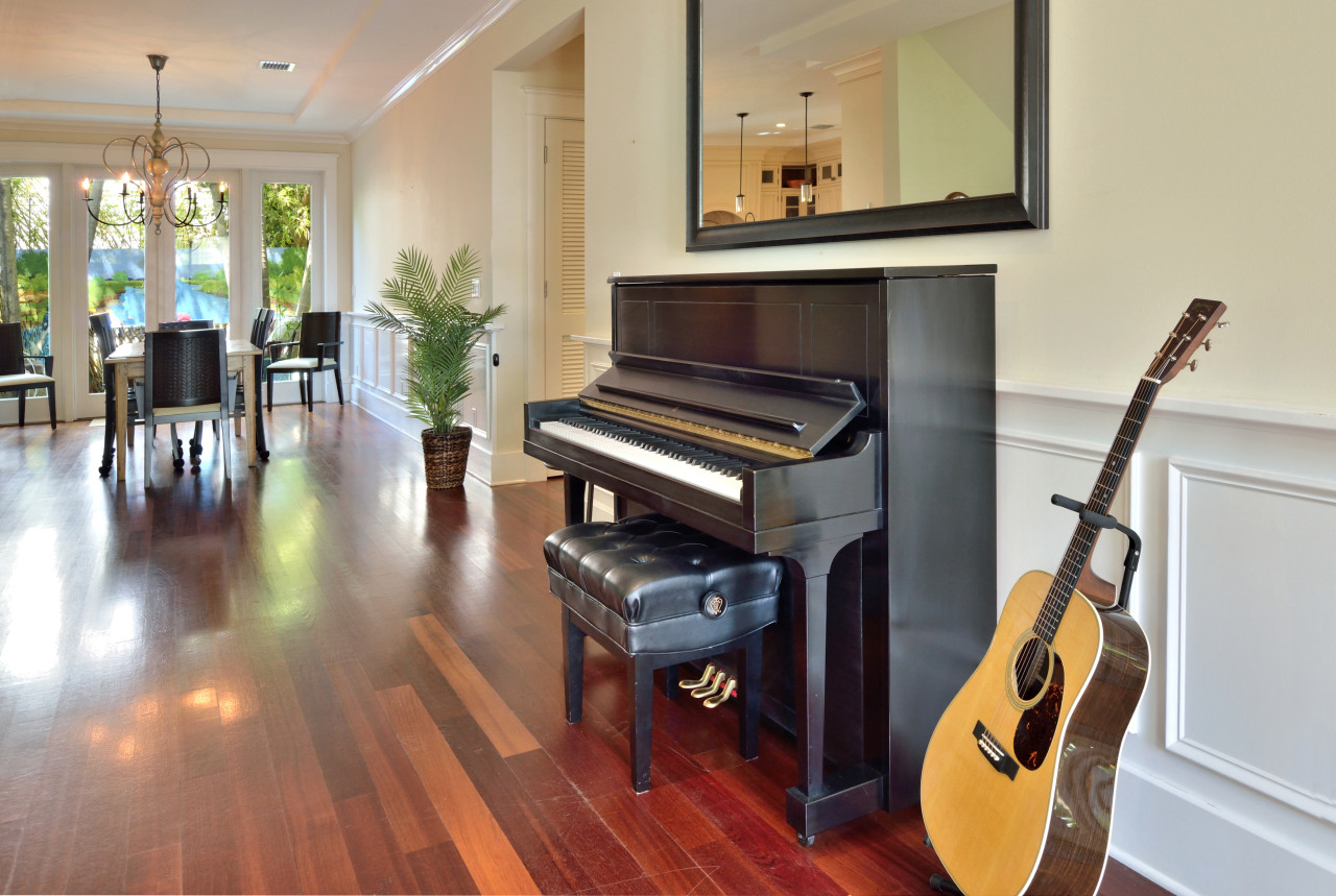 Lush mature tropical gardens, covered porches, privacy fences, and covered grill room. 3 fully equipped gourmet kitchens. Upright Steinway Piano, Martin Guitar. Central a/c and heat. Wi-Fi internet throughout the property, large TV’s. Organic cotton linens for the bedrooms, towels are provided. Laundry station in Guest House Laundry and housekeeping closet in Main House. Laundry closet in the cottage. Catering can be arranged. Maid service can be scheduled.