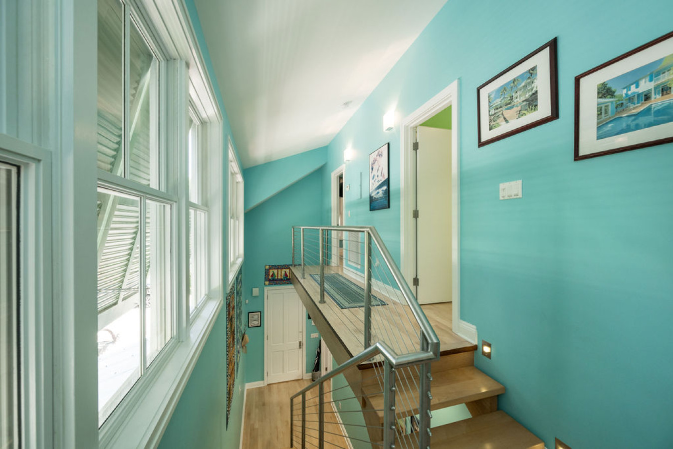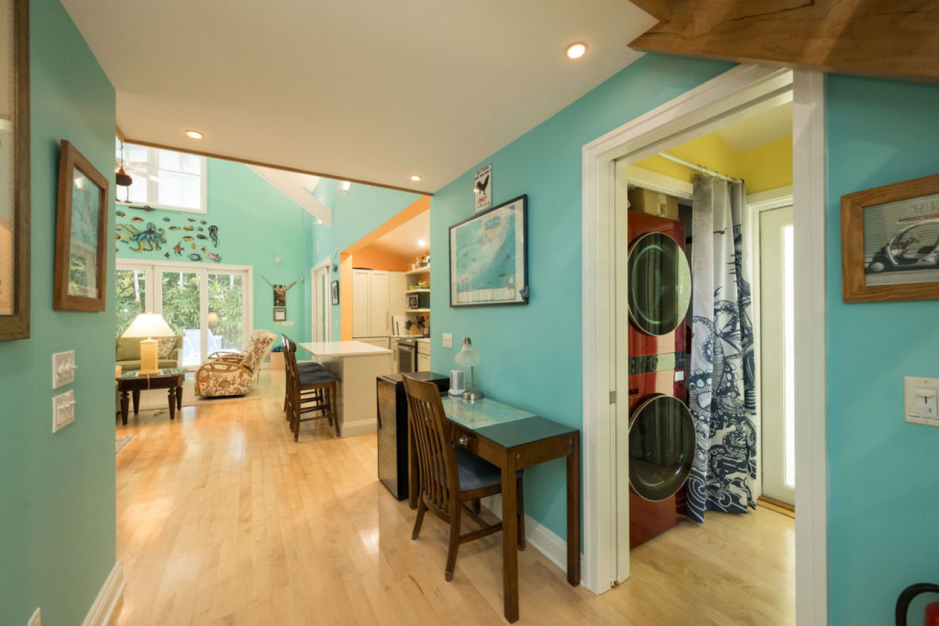 Make your way down the artful, turquoise entry hallway and you’ll notice this home is well-stocked with all you need for a great time. Carts and wagons for the beach, yoga mats, towels, boogie boards, and cabinets full of snorkel gear, pool toys, games for game night, books and more.