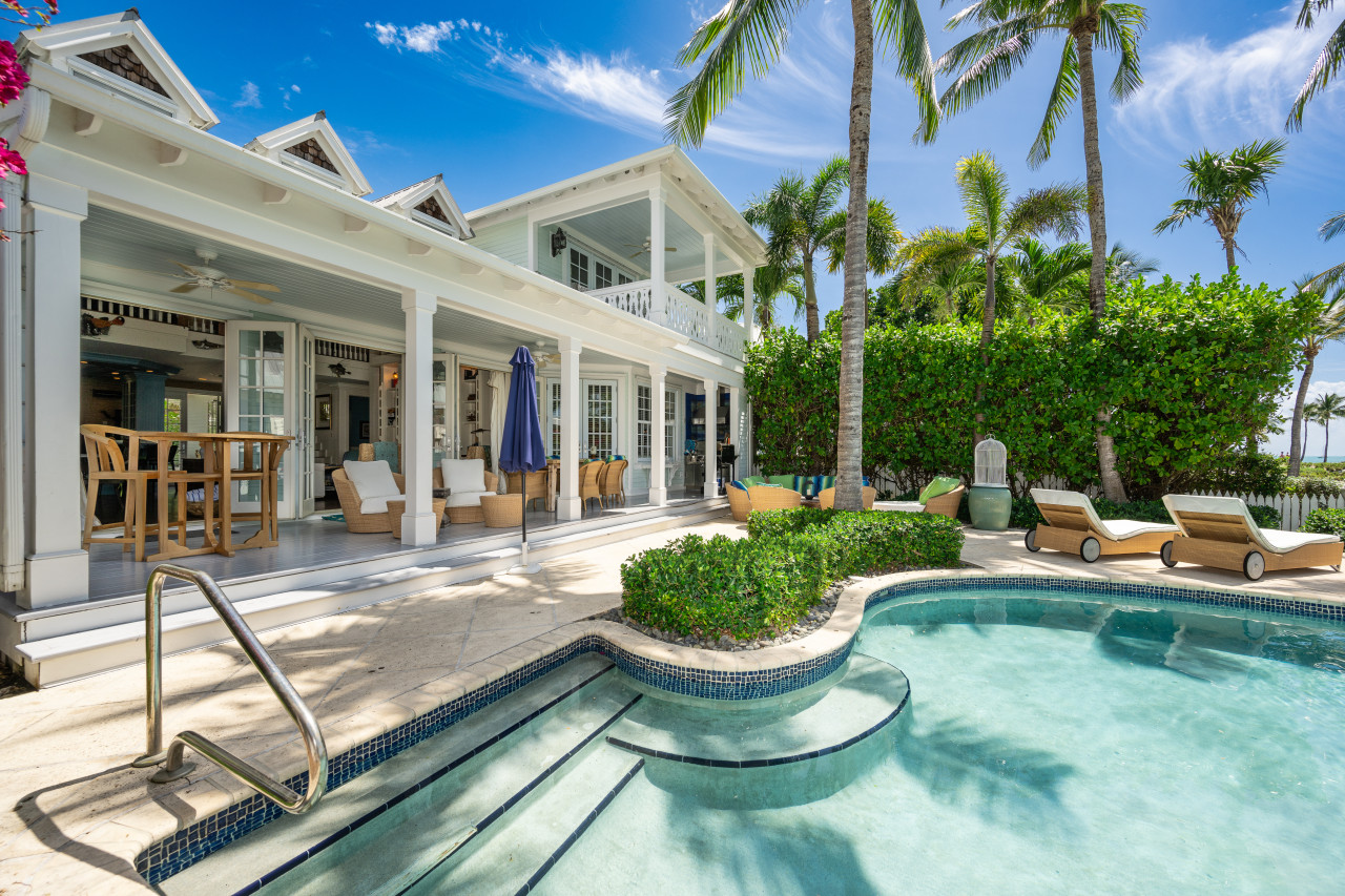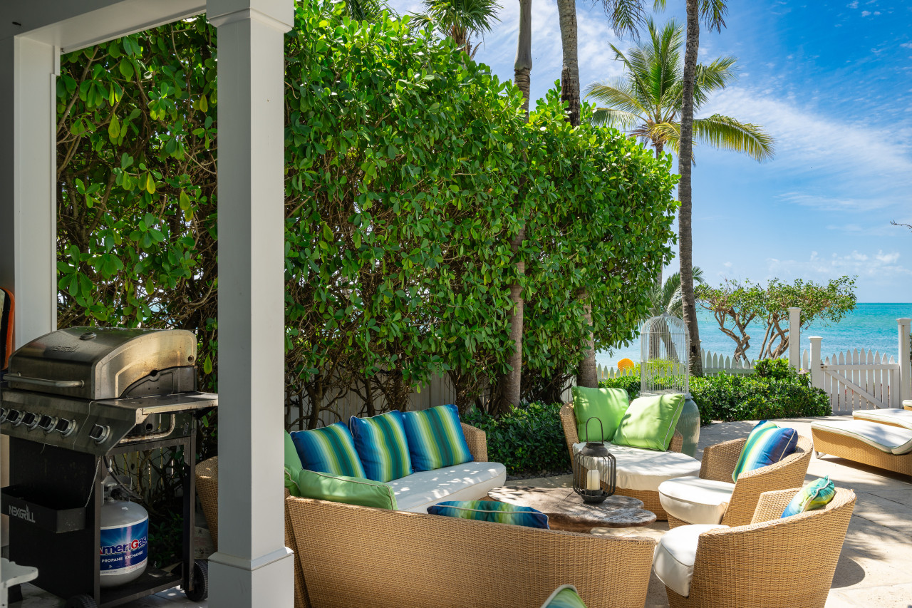The outdoor space is where 10 Sunset Key truly shines. A large, covered porch offers both shaded and sunny seating areas, plus a grill and prep station. The heated pool invites gathering, play, and relaxation. Just beyond, a private footpath leads to your own sandy beach with plenty of seating—perfect for watching ships drift past the horizon, spotting birds in flight, and cherishing the joy on your family’s faces.
